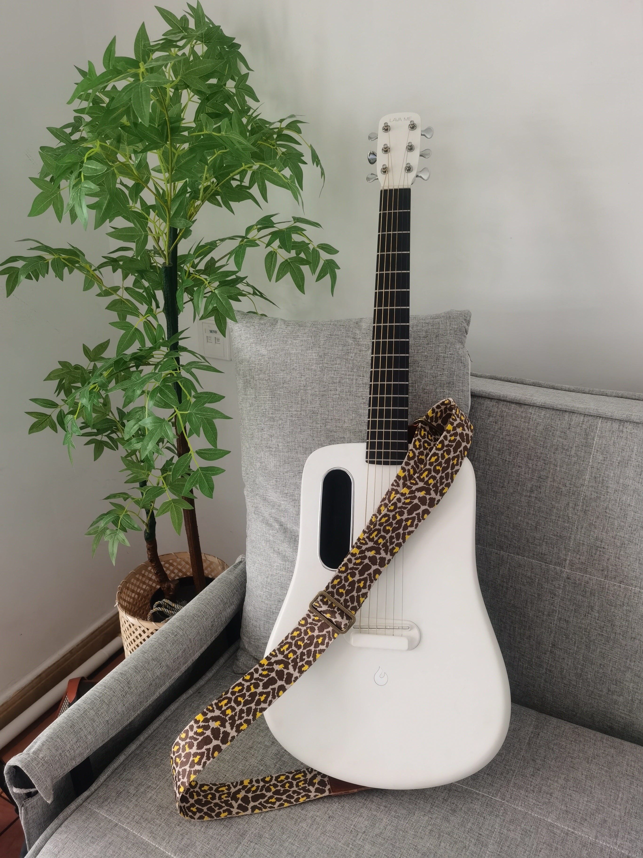 Pink Lotus Embroidery Guitar Strap - Handcrafted Adjustable